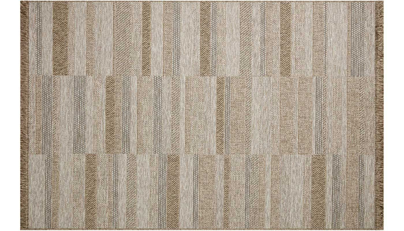 Made for sunny days ahead, the Dawn Collection is an indoor/outdoor rug that looks like a woven sisal rug but is power-loomed of 100% polypropylene, which makes it water- and mildew-resistant (so it's ready for rainy days ahead, too). Available in modern graphic patterns in tonal beige neutrals, Dawn has a short edge fringe that adds a playful and elevated feel to a rug that can handle a lot of foot (or paw) traffic, whether outside on a patio or in a busy mudroom. Rinse off with a hose when needed.