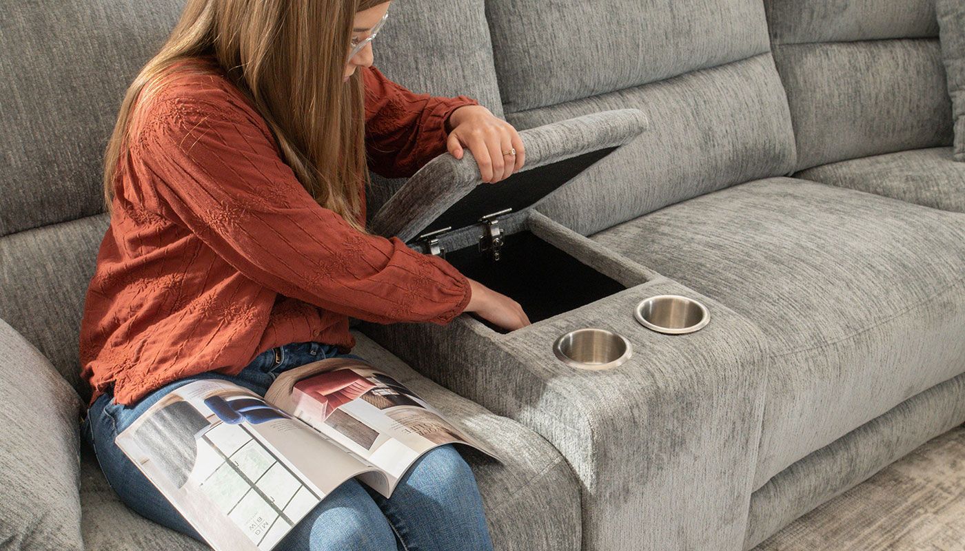 Our Renegade power reclining sectional combines style, comfort, and functionality, creating a cozy and inviting atmosphere in your living room. Crafted with meticulous attention to detail, this modular power reclining sectional is designed to enhance your relaxation experience. The sectional is constructed using high-quality materials with a sturdy frame to ensure durability and longevity. It is upholstered in a beautiful ice-blue Chenille fabric giving you and your family a soft and plush feel. The Chenille fabric is known for its durability and resistance to wear and tear, making it an ideal choice for active families. This modular sectional allows you to build it any way you want, to fit your living space. The power reclining functionality allows you to effortlessly adjust the position of the seats to your desired level of comfort. With its plush ice-blue Chenille fabric, convenient console storage, and adjustable reclining positions, our Renegade power reclining sectional is designed to provide you with the ultimate lounging experience!